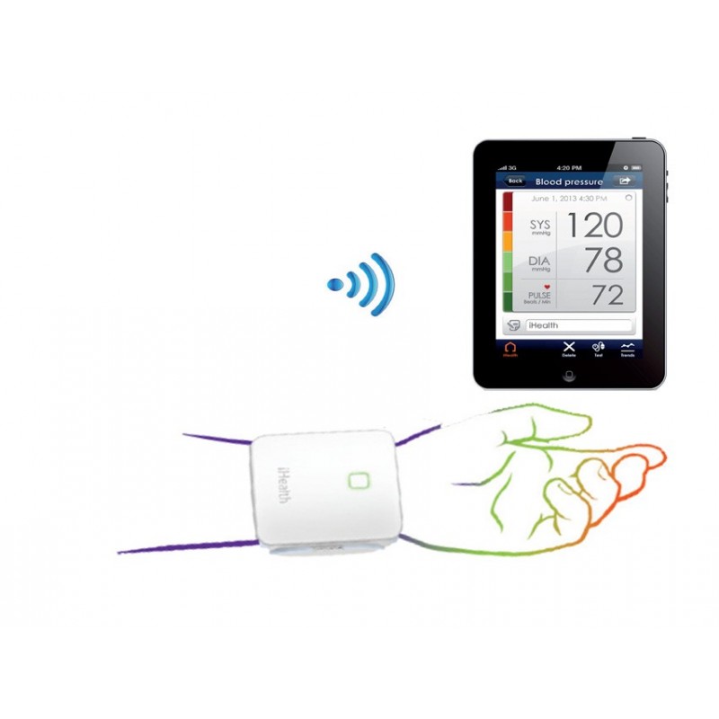 Dispositivo per la misurazione della pressione sanguigna e della frequenza cardiaca wireless compatibile con smartphone e tablet Apple e Android con l'app iHealth MyVitals gratuita disponibile per il download, è in grado di essere usato su utenti multipli e di generare grafici rilevanti e personalizzati per poter osservare a colpo d'occhio l'andamento delle misurazioni.