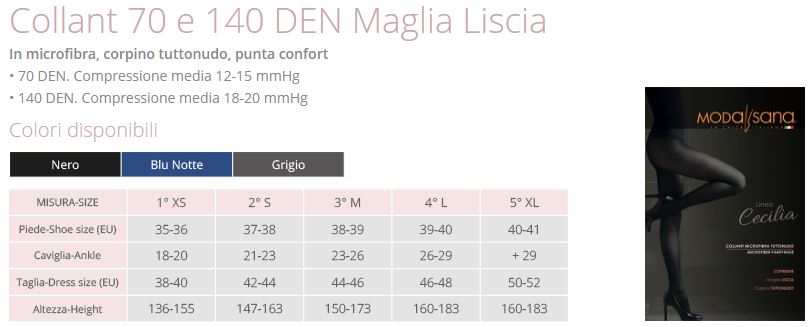 • 70 DEN. Compressione media 12-15 mmHg