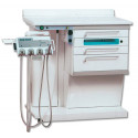 Fonendoscopio a testina piatta e archetto biauricolare in rame, per uso pediatrico con sfigmomanometro ad aneroide per la misurazione della pressione arteriosa.