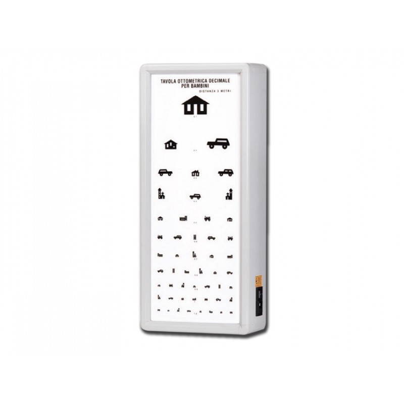 Ottotipo luminoso pediatrico 3 metri con schermo illuminato per garantire una luce perfetta e una visione accurata. Indicato per il test di acuità visiva da lontano nei bambini.