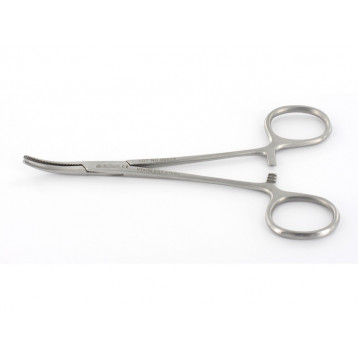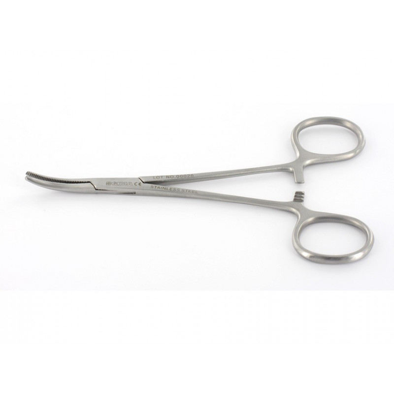 Pinza curva da emostasi in acciaio inox lunga 16 cm. Questa pinza crile Gima è molto pratica e maneggevole, riutilizzabile e pratica per clampare vasi sanguigni.