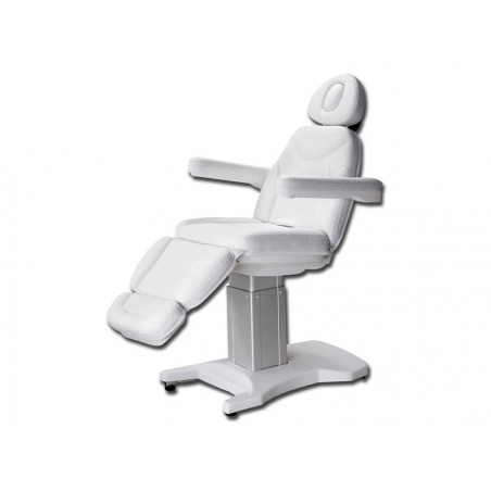 Poltrona elettrica, studiata per regolare l'altezza (63-88 cm), lo schienale e i poggiapiedi direttamente dalla pedaliera. La poltrona e' completamente motorizzata, con i suoi 3 motori. Poggiatesta e bracciali estraibili e flessibili. Per una maggiore stabilita', la base e' stata realizzata in alluminio.