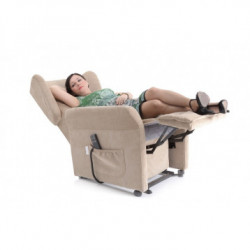 Poltrona alzainpiedi DOLCEVITA, pensata per il relax ed il riposo della persona. Schienale e seduta con imbottitura a densità differenziate, studiati appositamente per mantenere una posizione corretta. Struttura in acciaio verniciato, tessuto tecnico, antimacchia ed idrorepellente. Monta due motori indipendenti che consentono di inclinare lo schienale e il poggiapiedi separatamente, consentendo così di ottenere più posizioni, da quella adatta per la lettura o la visione della televisione, a quella di rilassamento e/o digestione. La poltrona è inoltre dotata della funzione alzainpiedi, grazie ad un motore che consente il sollevamento della persona. Con questo dispositivo di sollevamento, la persona seduta è accompagnata fino ad una posizione quasi eretta, facilitando così la messa in piedi della persona. Le regolazioni delle varie posizioni dello schienale e del poggiapiedi avvengono tramite un pratico telecomando dotato di quattro pulsanti, facile da usare. Modelli disponibili GORDON Tessuto GORDON - Colore BLU - Taglie S-M-XL Cod. PO200B Tessuto GORDON - Colore ROSSO - Taglie S-M-XL Cod. PO200R Tessuto GORDON - Colore SABBIA - Taglie S-M-XL Cod. PO200S Modelli disponibili RITZ Tessuto RITZ - Colore TESTA DI MORO - Taglie S-M-XL Cod. PO210M Tessuto RITZ - Colore SABBIA - Taglie S-M-XL Cod. PO210S Tessuto RITZ - Colore TURCHESE - Taglie S-M-XL Cod. PO210T