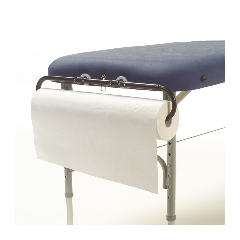 Portarotolo per lenzuolino di carta per letti medici. Si adatta perfettamente a qualsiasi lettino da visita medica in legno. Su richiesta sono disponibili supporti con diverse misure.