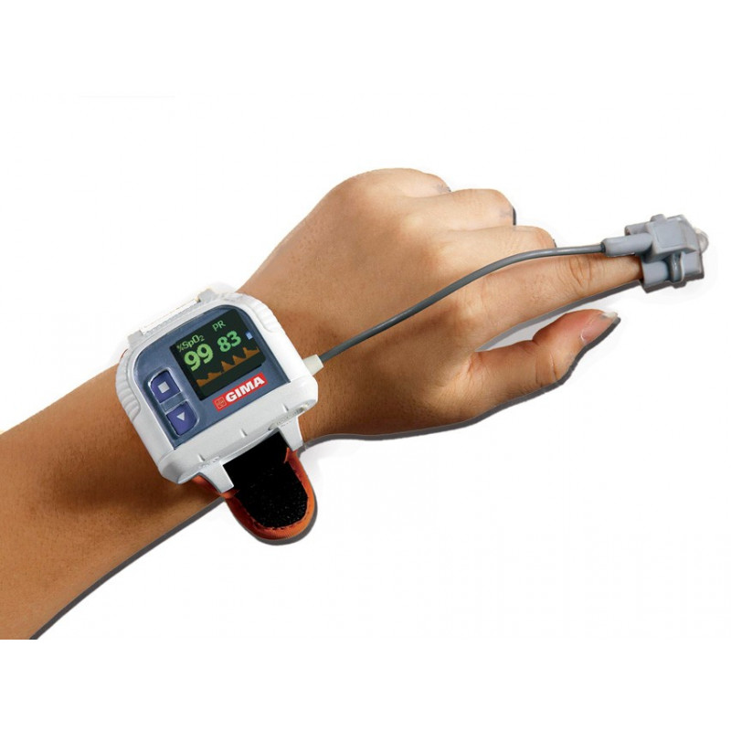 termine o per l'uso in campo sportivo. Monitoraggio confortevole, può essere allacciato al polso del paziente come se fosse un orologio e utilizzato per misurare l’SpO2 e le pulsazioni. - Allarme acustico e visivo con limiti di allarme regolabili - visualizza l'andamento grafico di SpO2 e pulsazioni - Modalità di archiviazione selezionabile - fino a 500 ore di memorizzazione dei dati in formato numerico o Trend - Impostazione orologio e funzione di visualizzazione della data - Software per scaricare e archiviare le misurazioni sul PC incluso - Sensore dito rimovibile