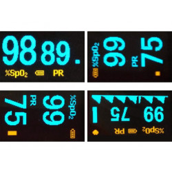 Selezioni il colore in fase d'ordine Per rilevare saturazione, battito e perfusione dal dito del paziente. - Misura precisa della SpO2 e del battito - Visualizzazione a 2 colori della SpO2, PR, PI, plestimogramma e istogramma del battito, allarmi visivi ed acustici - Gamma di misurazione SpO2 35-99%, battito 30-240 bpm - Display orientabile in 4 direzioni - Accensione e spegnimento automatico - Funzionamento continuo per 30 ore con 2 pile alcaline AAA - Indicazione del livello di carica della batteria - Resistente all’ingresso di liquidi - Manuale in 8 lingue: GB, FR, IT, DE, ES, PT, GR, PL