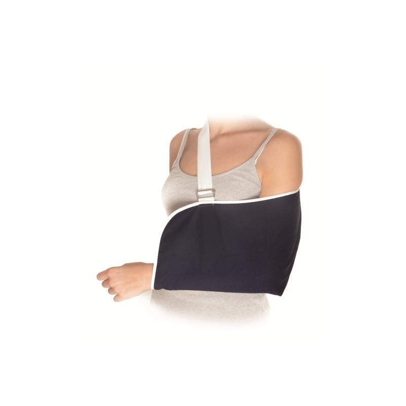 Fascia in raso di cotone con lacci regolabili per sostenere il braccio e la spalla in caso di frattura, distorsione o interventi all'arto superiore. Leggera, confortevole e altamente traspirante. Disponibile in diverse misure.