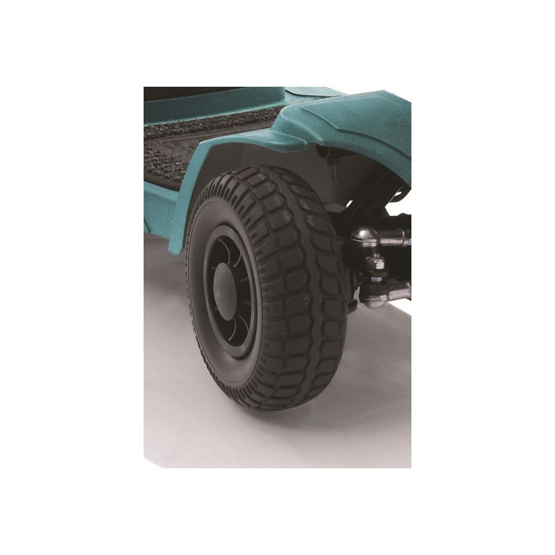 Carrozzina elettrica basculante per esterno con ruote grandi e freni elettromagnetici. Indispensabile per anziani e disabili che hanno difficoltà a spingere la sedia a rotelle in maniera autonoma.