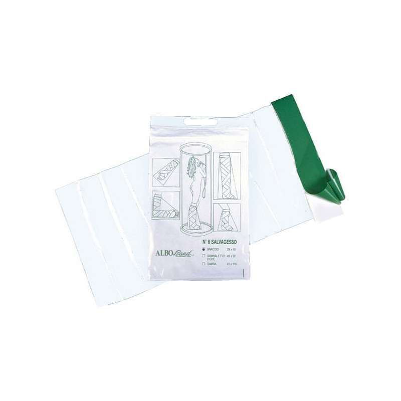 Scarpa coprigesso in tessuto traspirante con suola antiscivolo utilizzabile sia per il piede destro sia per quello sinistro. Può essere indossata con il gesso o con un bendaggio rigido. Disponibile in varie misure.