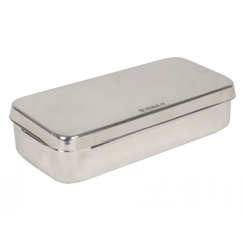 Strumentario in acciaio inox AISI 304 con spessore minimo 0.6 mm Portacotone - con coperchio Dimensioni: Ø 102 x 65 mm - 0.5 l