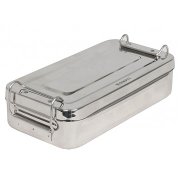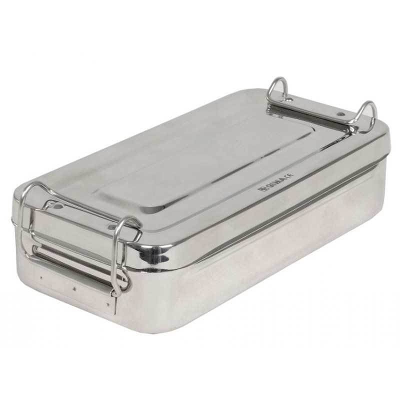 SCATOLA IN ACCIAIO INOX SENZA MANICI. • Dimensioni: 25 x 12 x h 6 cm • Autoclavabile a 125 °C