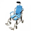 Sedia da doccia e da comodo in alluminio con schienale reclinabile, poggia-testa, braccioli e pedane amovibili.