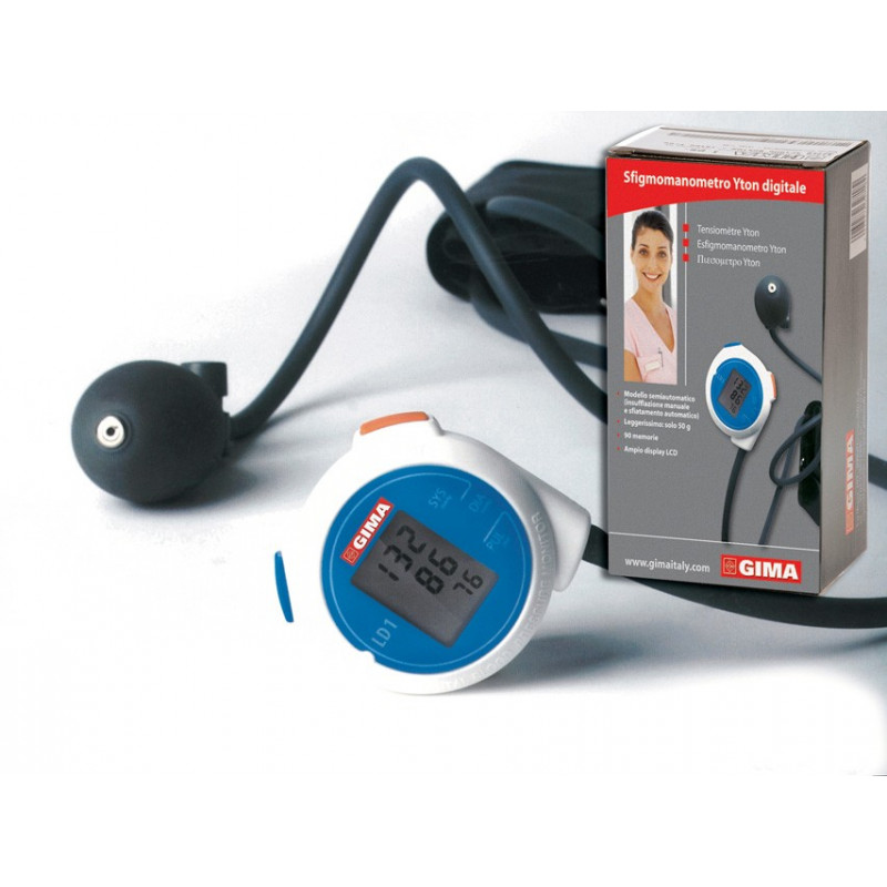 Sfigmomanometro digitale semiautomatico con insufflazione manuale e sfiatamento automatico attraverso valvola manuale. Leggero: solo 50g, un terzo dei misuratori di pressione tradizionali. Ampio display LCD da 9 cifre mostra contemporaneamente le indicazioni pulsazioni, pressione sistolica/diastolica, e memorizza 90 letture. Campo di misurazione: 40-260 mmHg Pulsazioni: 40-160/minuto Alimentazione: 1 batteria AAA