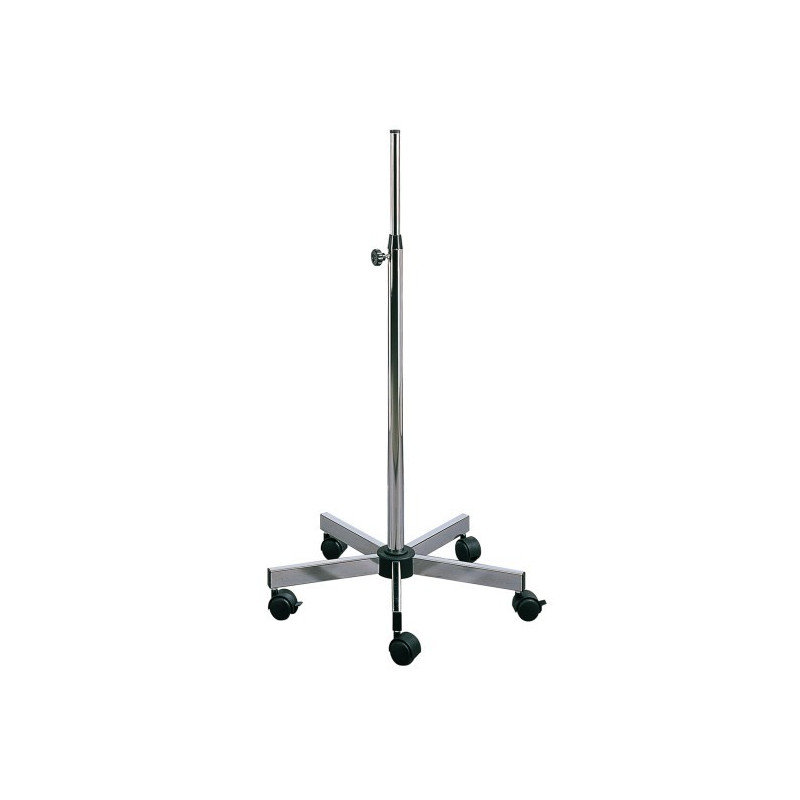Barella per posizione anti-shock con altezza regolabile, realizzata in lega d'acciaio verniciata a forno ral 9010, con 4 ruote per spostarla facilmente e paraurti in plastica agli angoli.