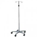 Quest'asta porta flebo poggia su un carrello a 5 raggi realizzati in plastica e con una ruota a terminazione di ciascun raggio, di cui una dotata di sicuro sistema frenante che impedisce all'asta movimenti involontari.