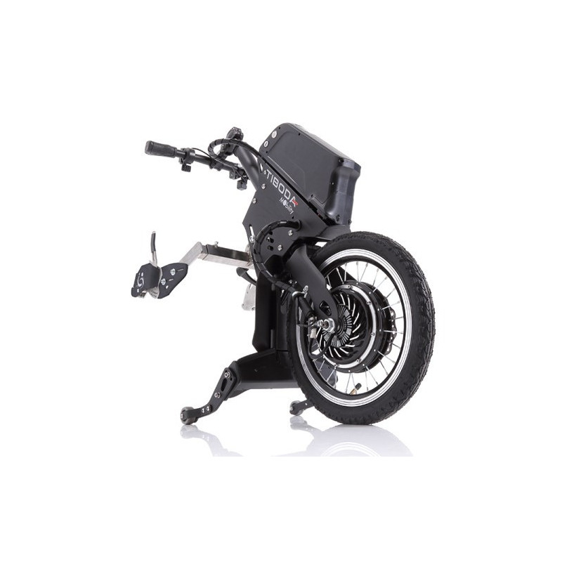 Il suo innovativo sistema di aggancio rapido (brevetto depositato), permette di agganciarlo e sganciarlo dalla carrozzina in pochi secondi e senza sforzi. Non ci sono scomodi morsetti da avvitare ogni volta. È su ciente allinearsi al TIBODA e agganciarlo.