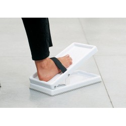 Piantana per ipodermoclisi ad elevazione oleodinamica per sala operatoria, interamente in acciaio 18/10 (AISI 304), 4 ganci inox antisganciamento. Portata max: 60 kg uniformemente distribuiti (max 15 kg per gancio). Altezza variabile da 1540 a 2550 mm tramite leva a pedale, base zavorrata anti-ribaltamento a 5 razze con ingombro Ø 650 mm, 5 ruote gemellari piroettanti Ø 75 mm antistatiche (di cui 2 con freno). Conforme alle direttive CE.