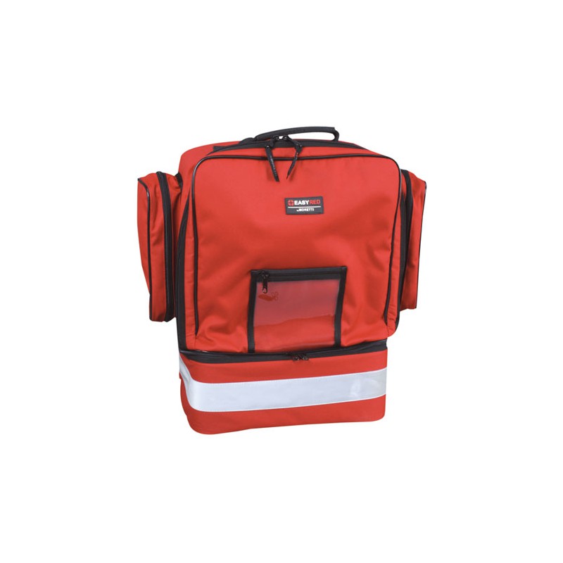 Zaino per emergenza e primo soccorso, prodotto con un particolare materiale antistrappo e suddiviso in due comodi scompartimenti. Viene utilizzato frequentemente per il trasporto di strumenti di emergenza, garantendo un'elevata sicurezza. La sezione posta alla base è strutturata con un materiale rigido, quindi si consiglia l'introduzione di materiali fragili e delicati.